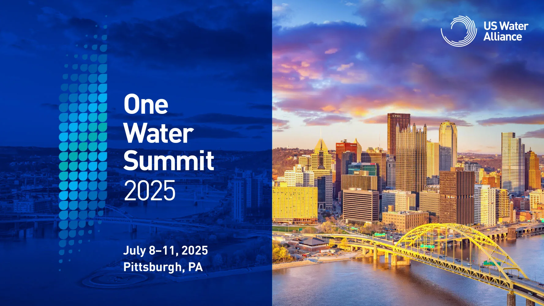 I am thrilled to announce that our next One Water Summit® will be in Pittsburgh, Pennsylvania, July 8 – 11, 2025! We’re looking forward to holding our signature event in a city that has served as a national model for centering water equity, advocating for sustainable water policies, removing lead service lines, and driving large-scale water infrastructure projects.